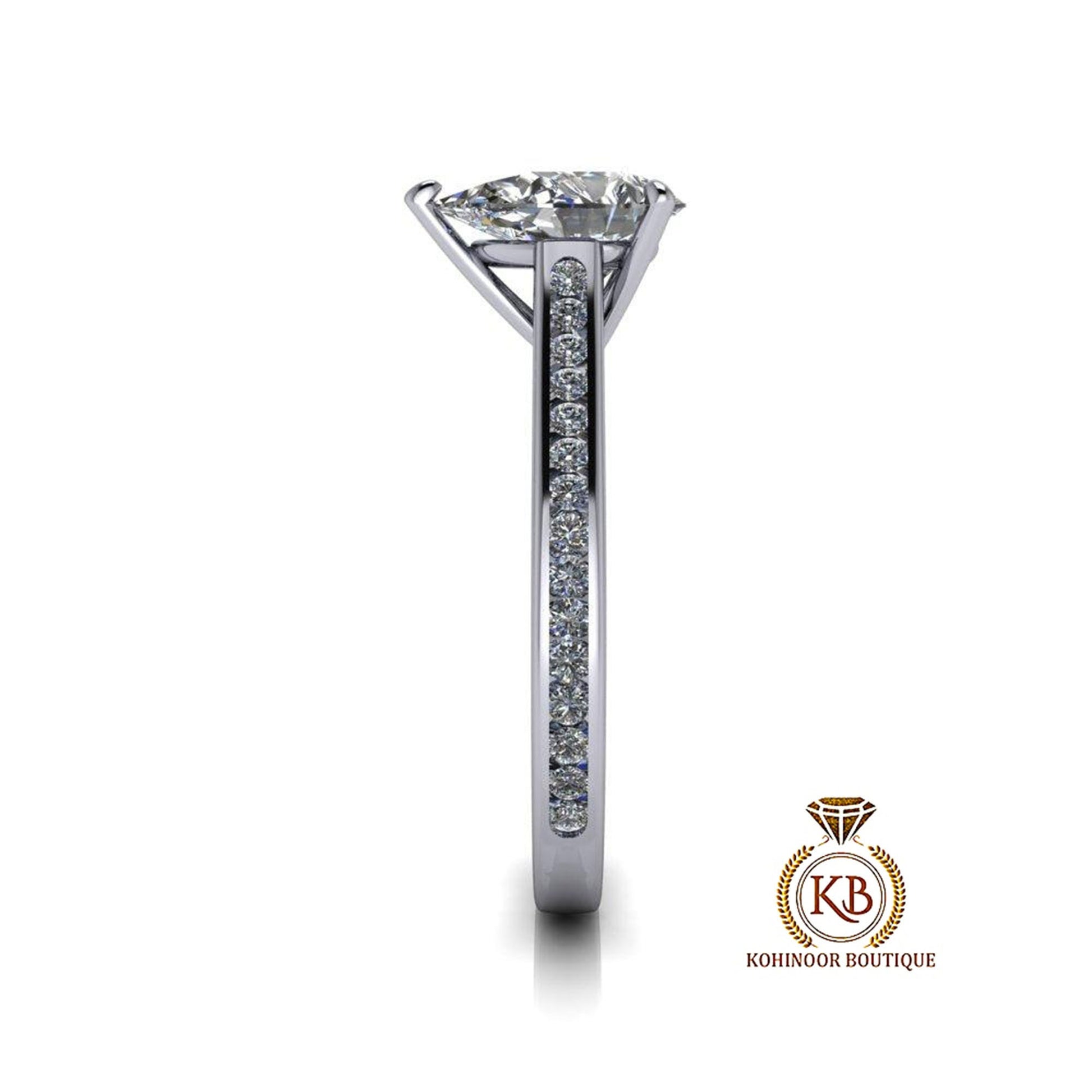 Pear cut moissanite Cathedral Trellis set with side pave Engagement Ring, ring for women, ring for her, gift for her