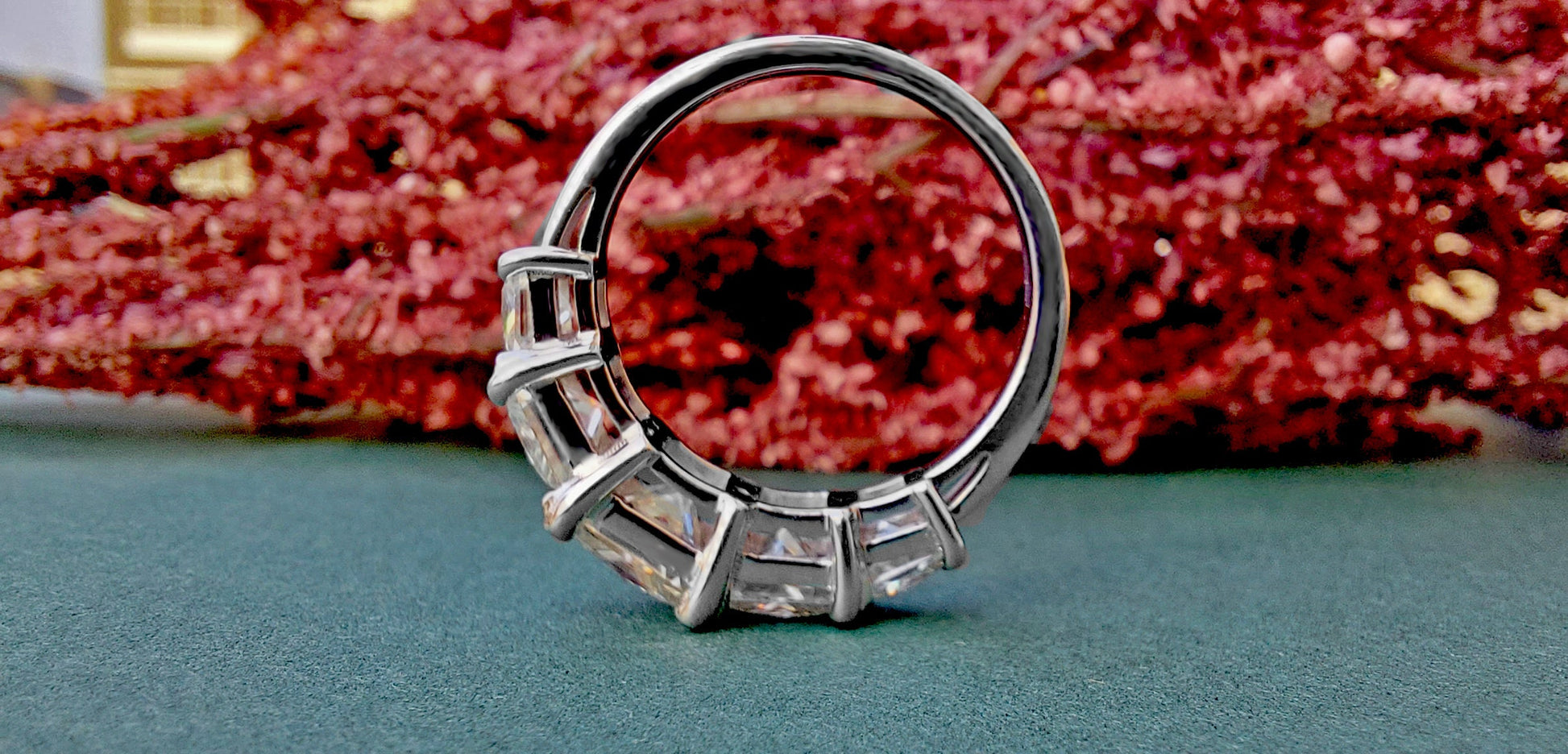 ● Our most popular designs are three stone ring, Asscher cut ring, emerald cut ring,
