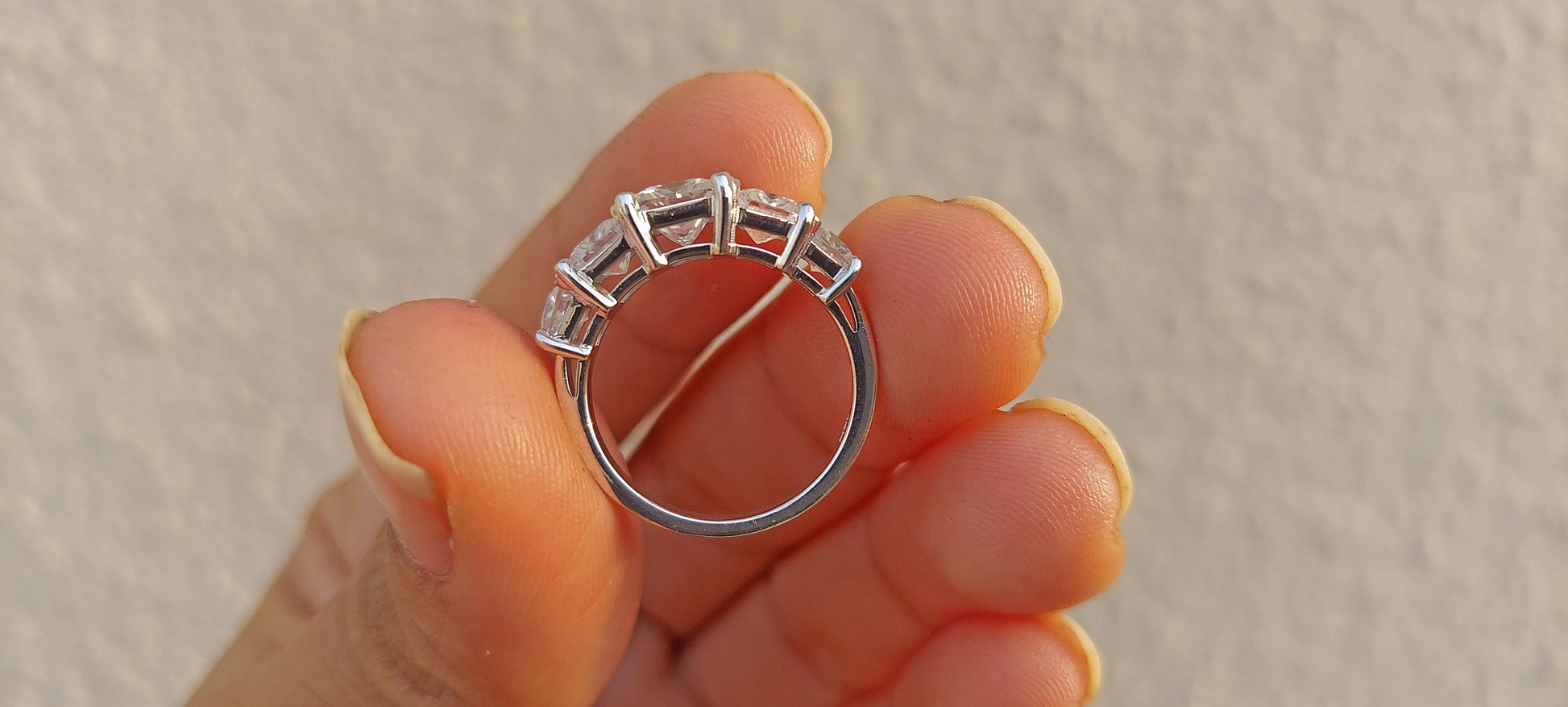 Got questions or concerns? Just send us a message — we're here to help!Princess Cut 5 stone Moissanite anniversary ring, 5 stone engagement ring, 5 graduating princess cut ring, ring for women, ring for her