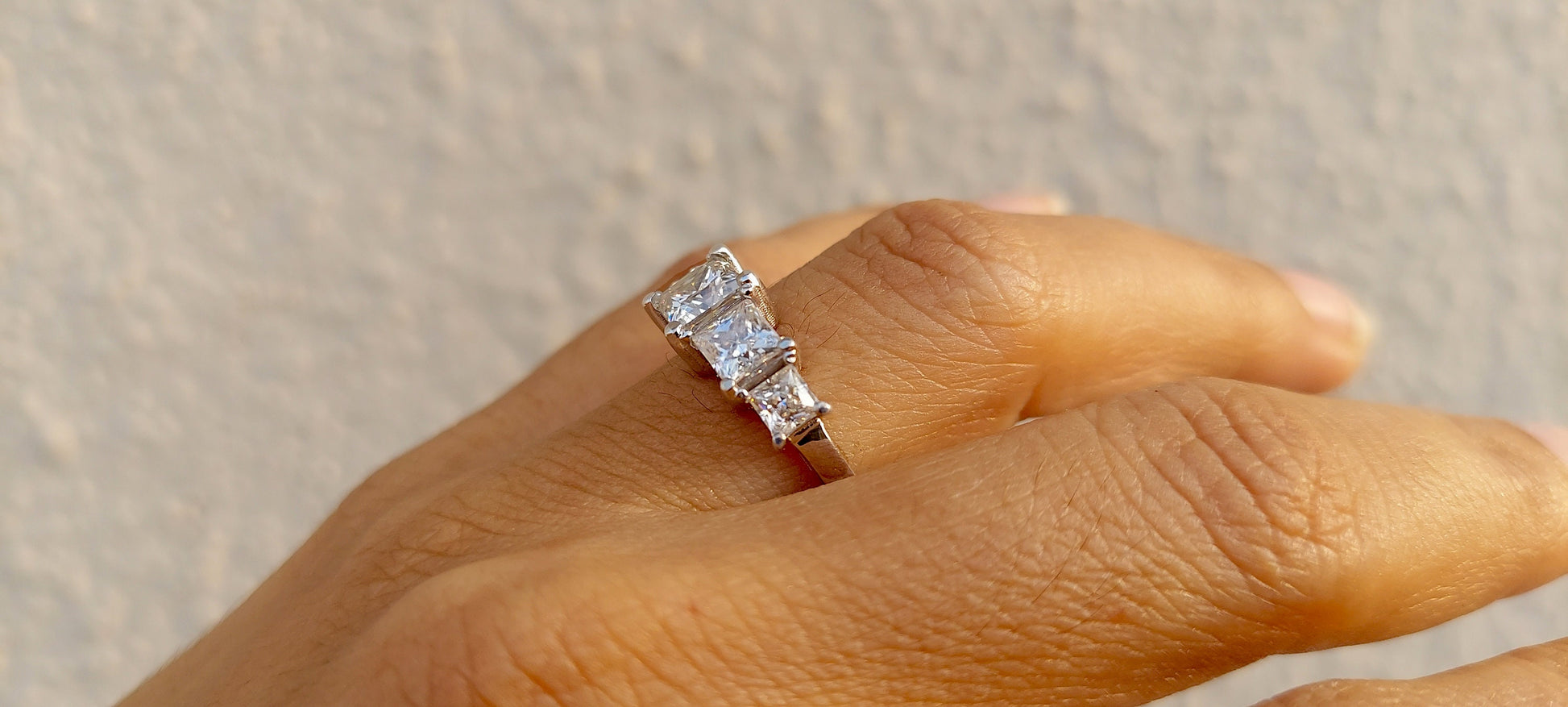 At Kohinoor Boutique, you’ll find Moissanite, which is less expensive, shinier, prettier,