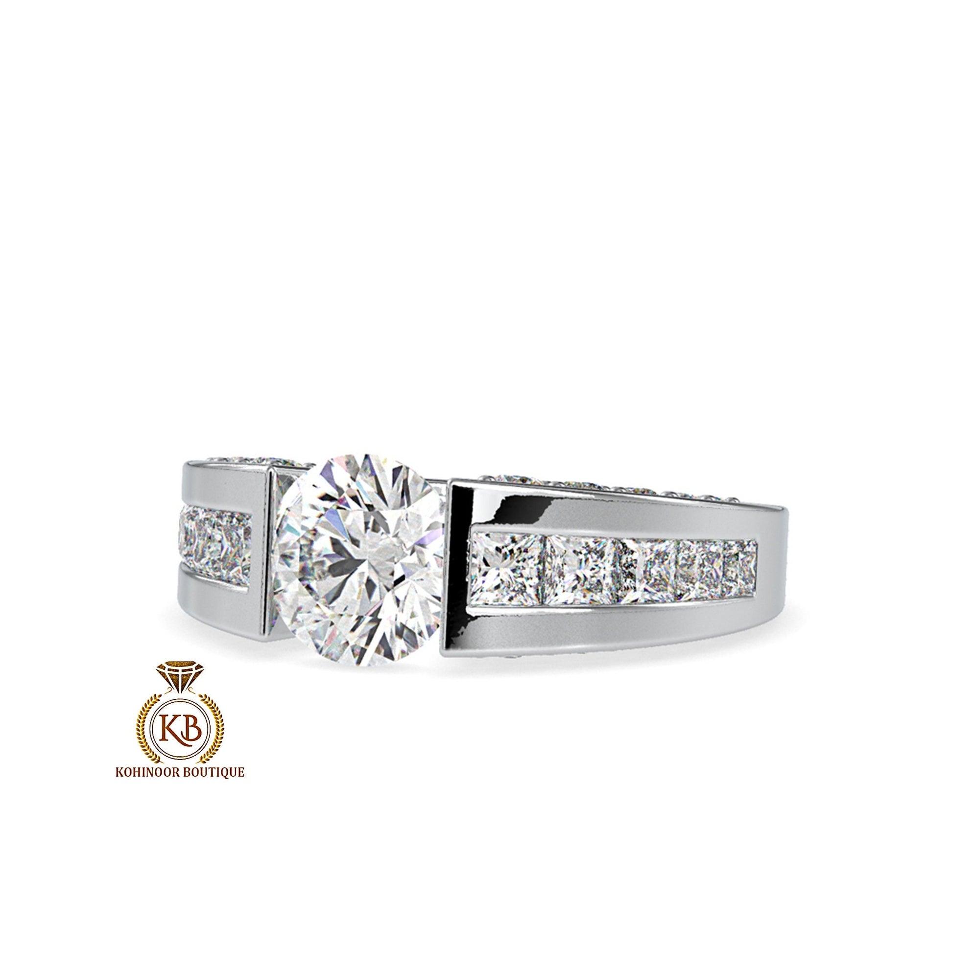 Round Cut Moissanite with princess cut side pave Engagement Ring, Proposal\Anniversary\Wedding Ring for Men\Women\Unisex Band