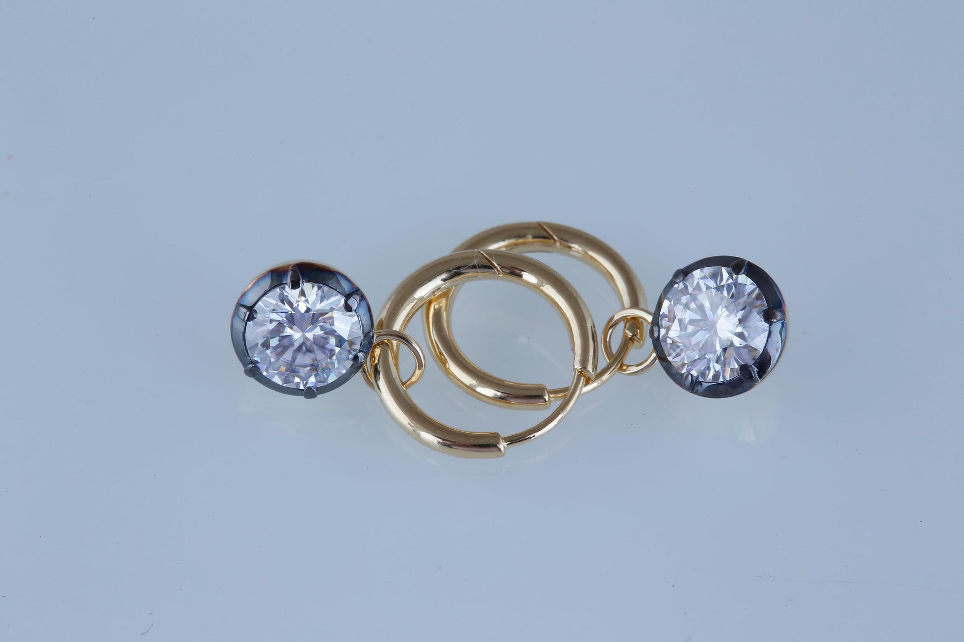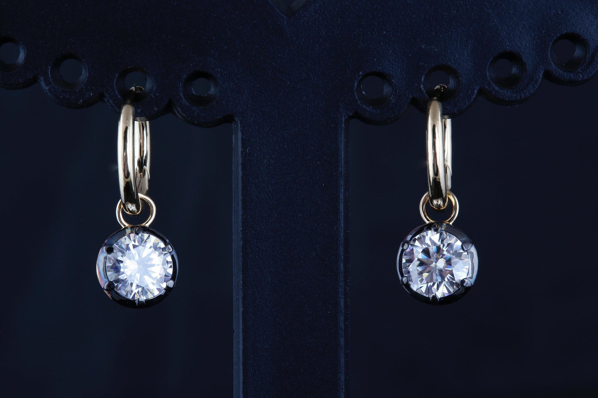 Round Lab grown diamond button back Georgian cut down Gypset huggie, removable hoops, statement earring, blackened gold earrings.