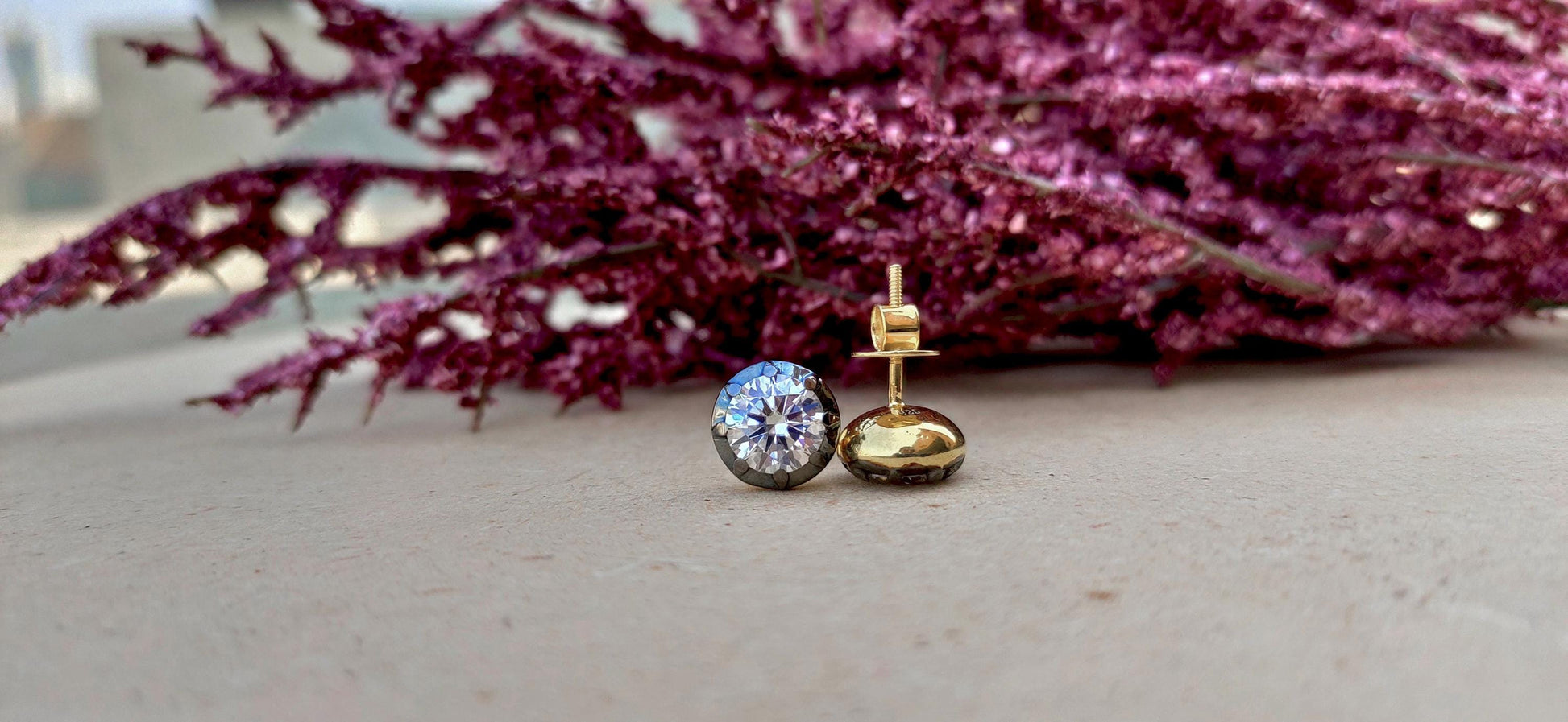 Round Moissanite button back Georgian cut down studs, statement earring, blackened gold earrings, studs earrings for women