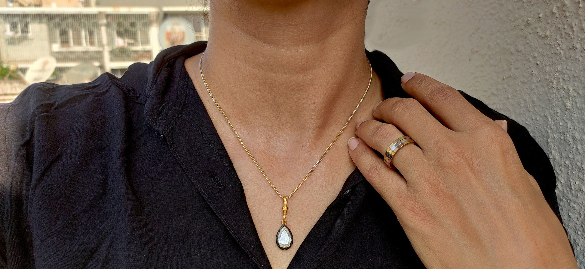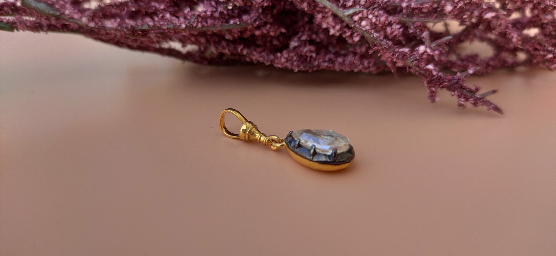 Got questions or concerns? Just send us a message — we're here to help!Step Cut Pear Moissanite Swivel Clasp Pendant, Collet set Georgian cut down set Pendant without chain, Wedding Pendant