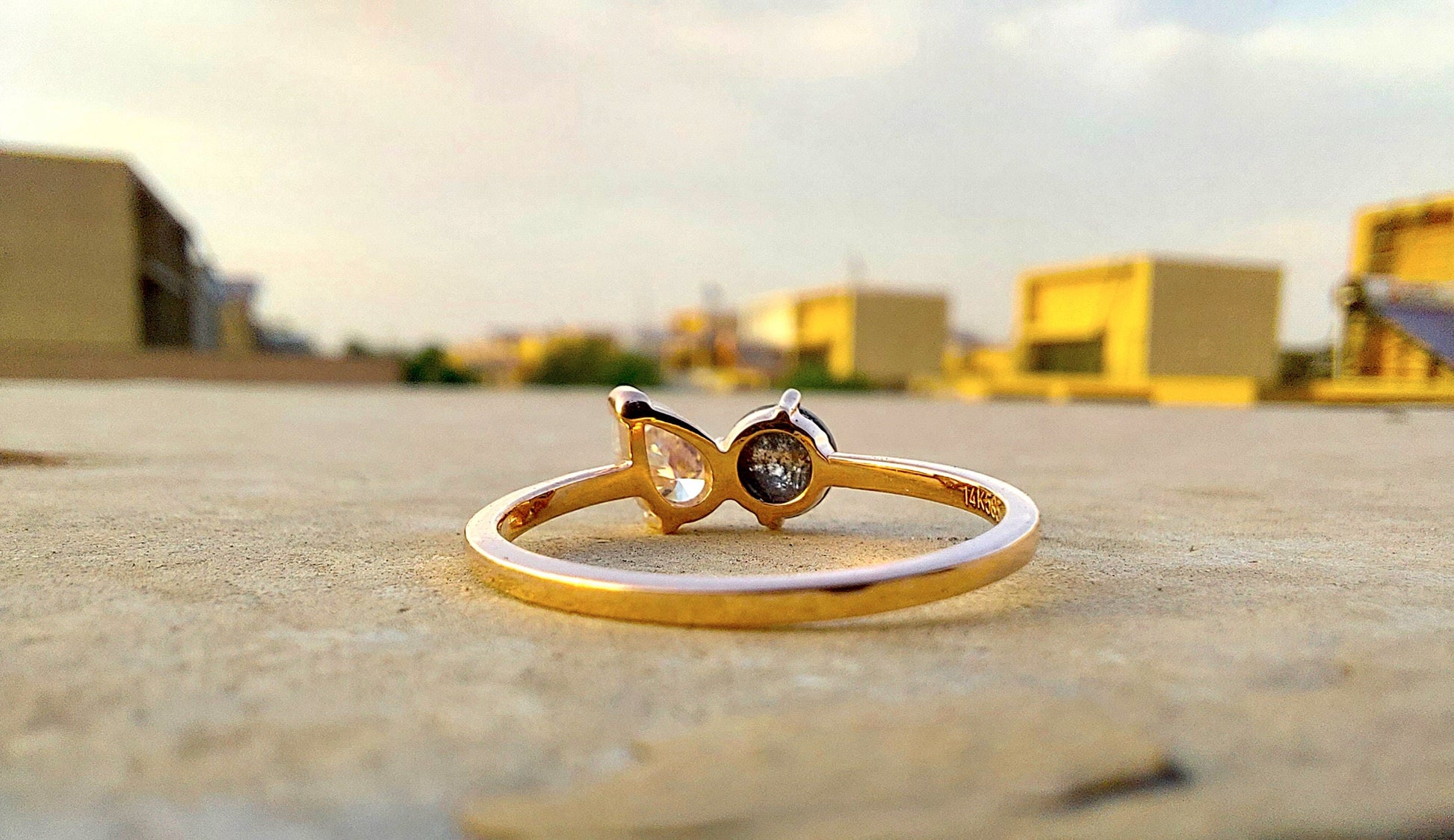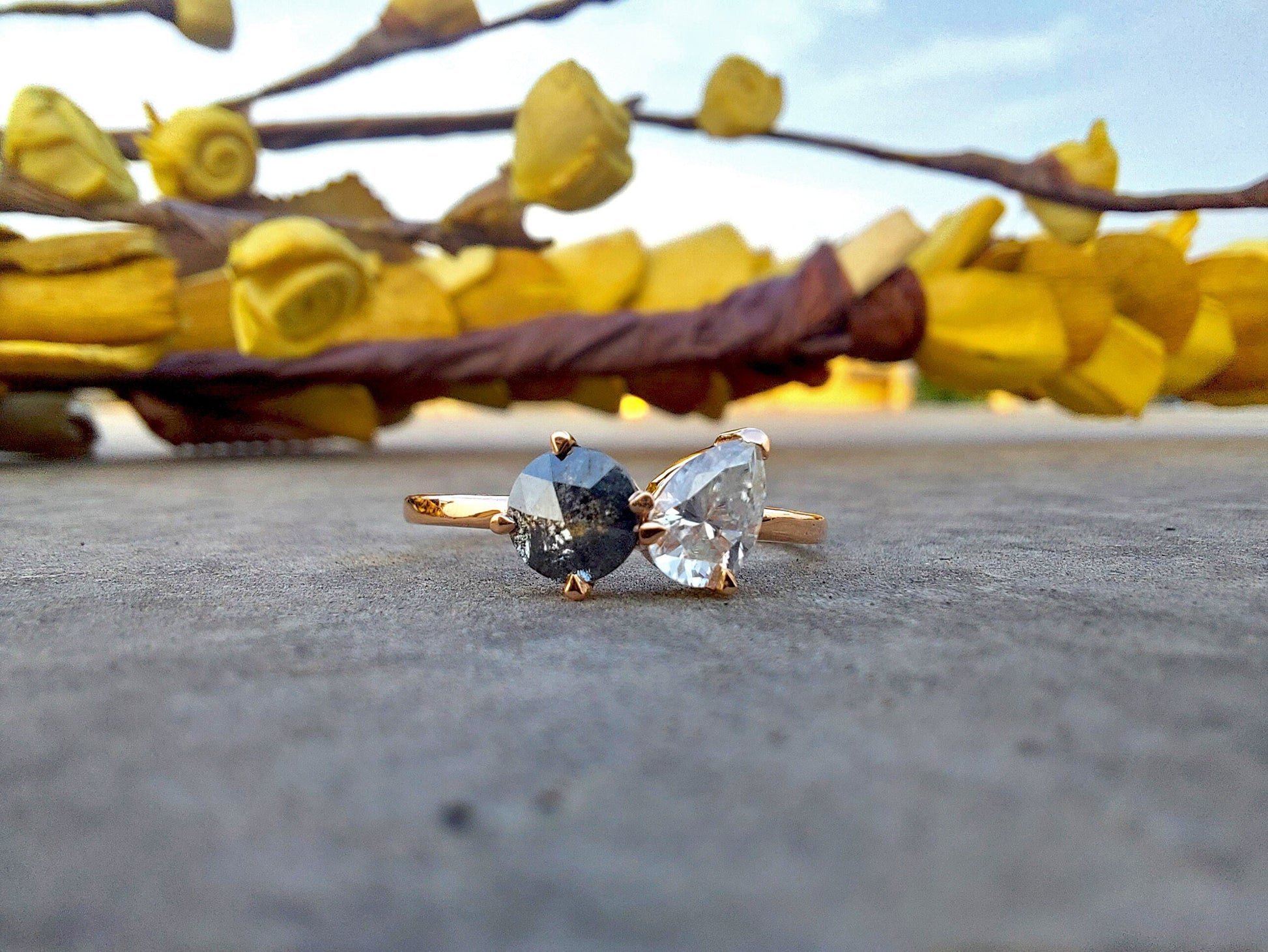 Got questions or concerns? Just send us a message — we're here to help!Toi et Moi Salt and Pepper with Moissanite Pear diamond two stone Engagement ring,Can be Customized in any shape & size,Celebrity 2022 trend Megan Fox