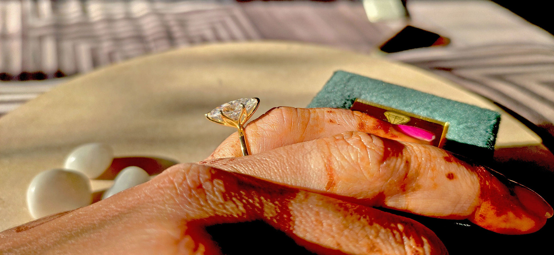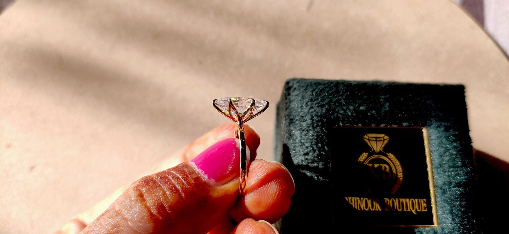 At Kohinoor Boutique, you’ll find Moissanite, which is less expensive, shinier, prettier,