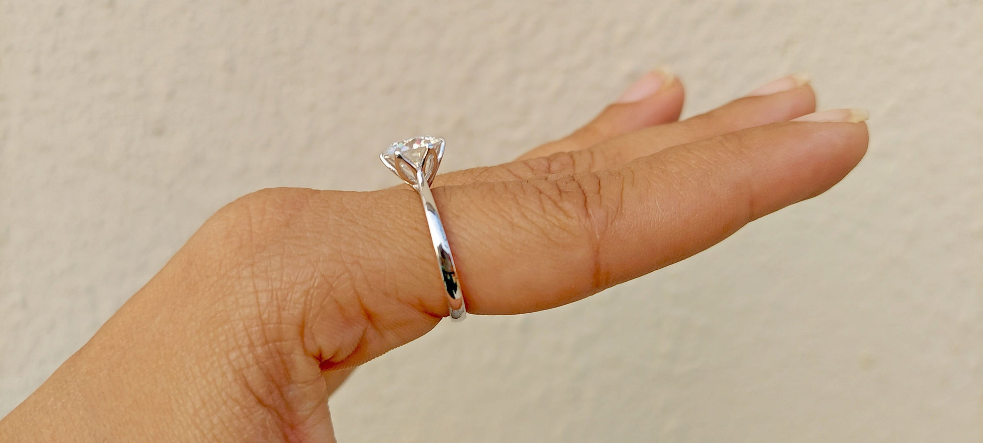 1. Go to a jeweler to try different carat sizes to find your perfect size, do remember to