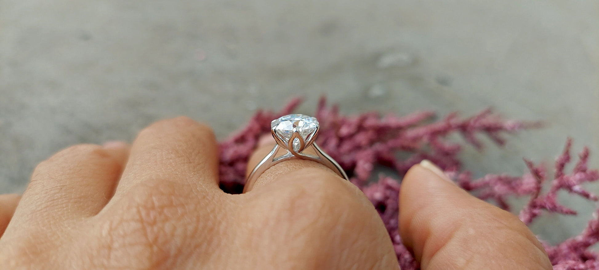 At Kohinoor Boutique, you’ll find Moissanite, which is less expensive, shinier, prettier,