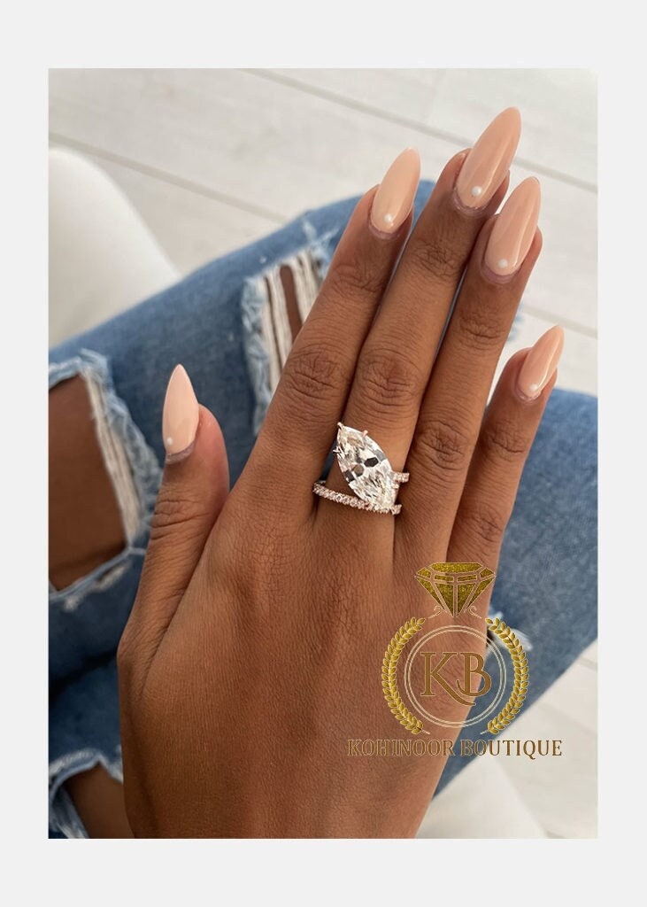Got questions or concerns? Just send us a message — we're here to help!Customizable Unique Tilted Floating Marquise Cut Moissanite Diamond Double Band Solitaire Engagement\Bridal\propose\anniversary Ring.