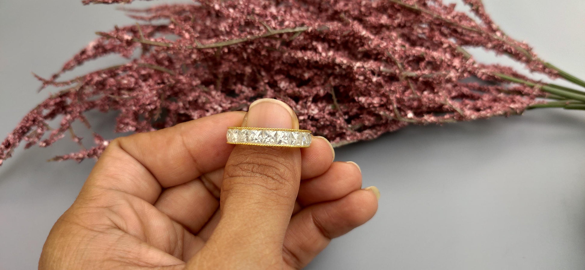 Vintage France\ French cut Moissanite Eternity ring,wedding band, stackable ring,Princess carre cut Half\Full eternity band,Anniversary gift
