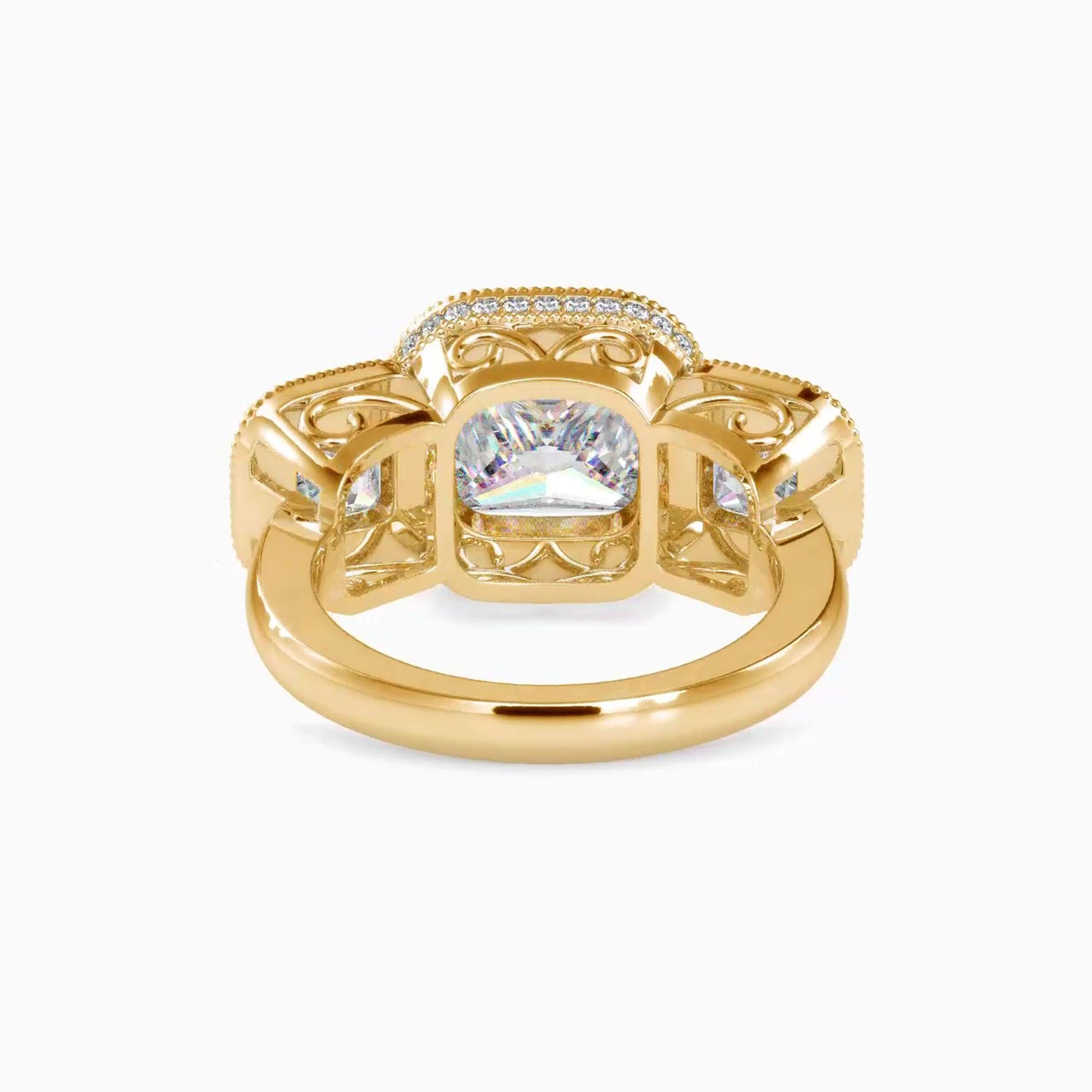 Vintage-inspired Princess cut Moissanite milgrain bezel set Halo with under halo 3 stone Moissanite Engagement ring.