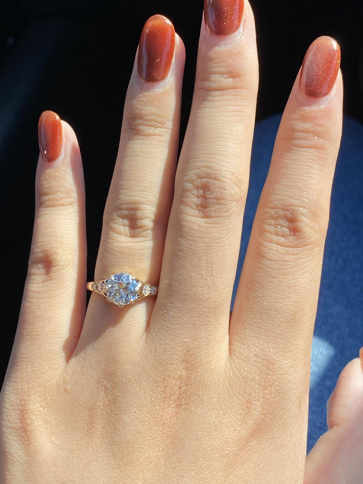 Got questions or concerns? Just send us a message — we're here to help!Vintage Old European cut moissanite solitaire Engagement ring, Edwardian ring for women, vintage-inspired setting.