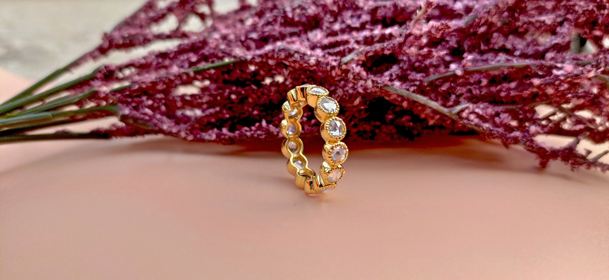 Got questions or concerns? Just send us a message — we're here to help!Vintage Rose Cut Round Moissanite Milgrain bezel set Full\Half Eternity wedding band, stackable Vintage ring, Art deco wedding band