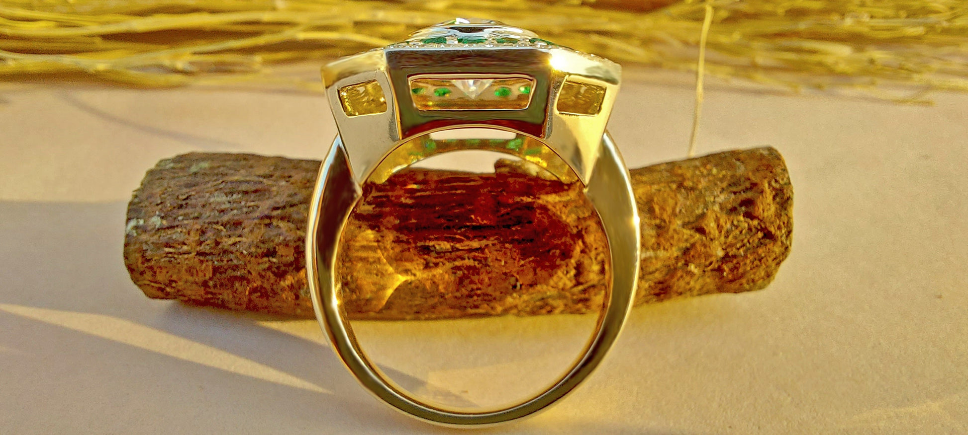 ● Our most popular designs are three stone ring, Asscher cut ring, emerald cut ring,